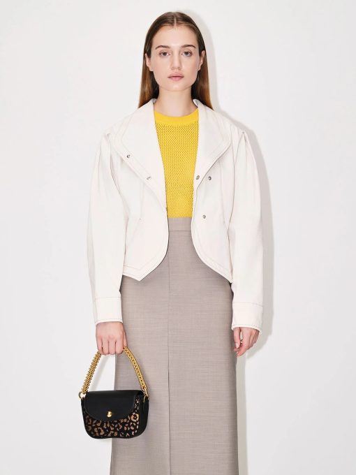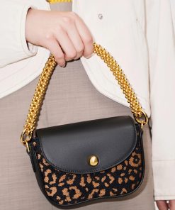Beaded Metallic Handle Sculptural Bag – Animal Print Black