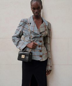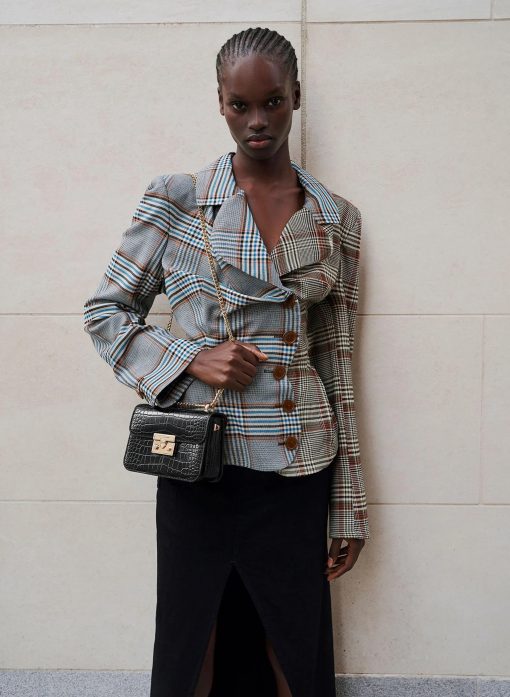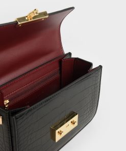 Croc-Effect Chain Strap Crossbody Bag – Black